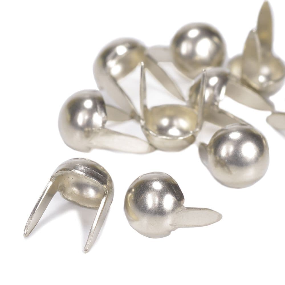 【ラウンド型 スタッズ 2爪 直径4mm 高さ7mm [ ニッケルシルバー / 15個セット ]】レザークラフトなどに使用できるラウンド型スタッズ 4mm。