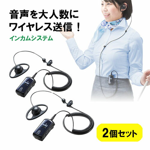 インカムシステム 無線 イヤホン マイク 業務用 ツアー 添乗員 売り場 イベント ホテル 片耳 小型 複数人 講義 充電式 2個セット 400-HSGS001 サンワサプライ