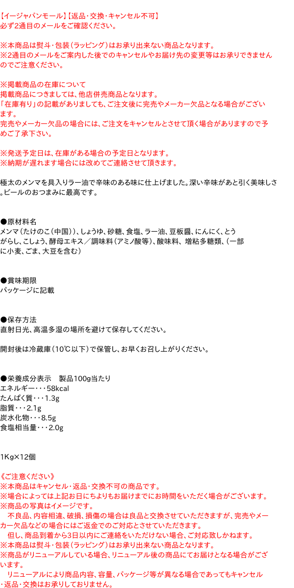 【送料無料】★まとめ買い★ ミクロ 辣油メンマ 1Kg ×12個【イージャパンモール】