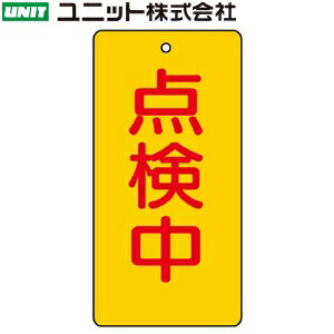 ユニット 856-17 『点検中』 バルブ開閉表示板 両面表示 長角型(黄地/赤) 5枚1組 120×60×2mm厚 エコユニボード